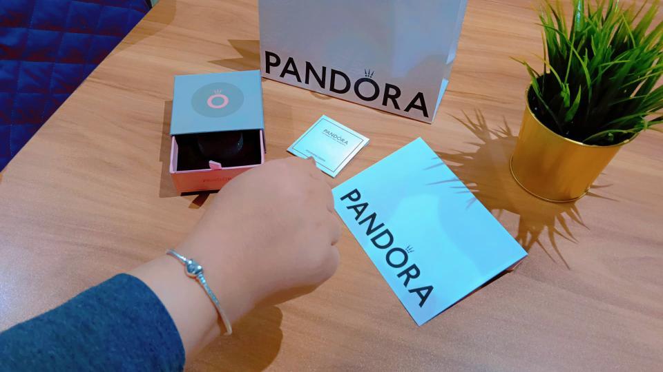 Pandora Logo Sterling Silver Bangle With Clear Cubic Zirconia